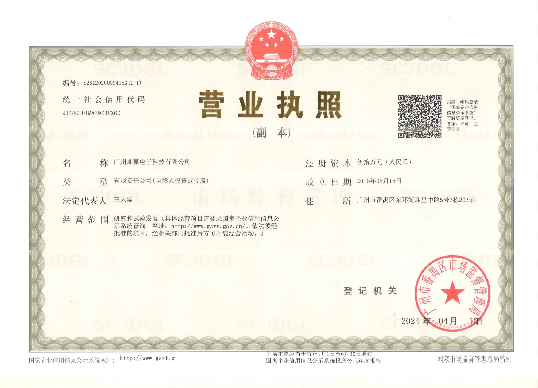 Registered address : Shop 203, Building 2, No. 5 Yingxing Middle Road, Donghuan Street Guangzhou Guangdong China
